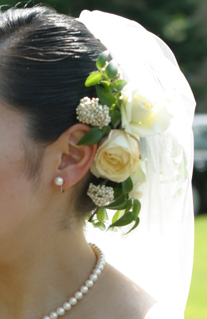 〜今回の花材〜 スプレーバラ(パルル)、薔薇(シャロ)